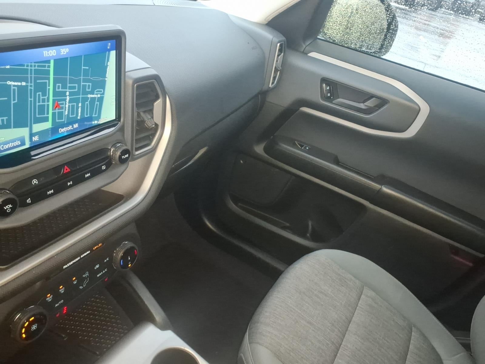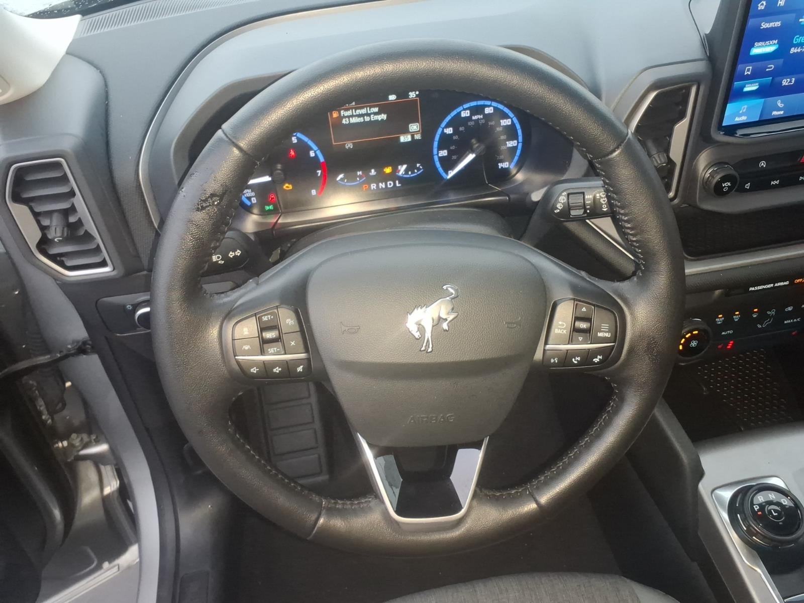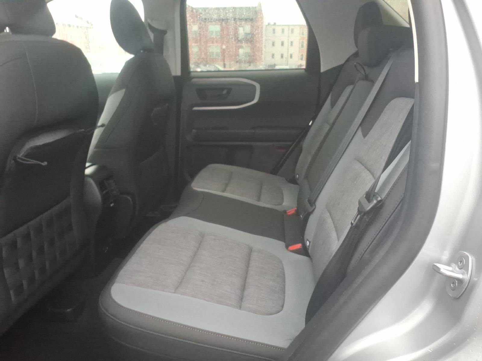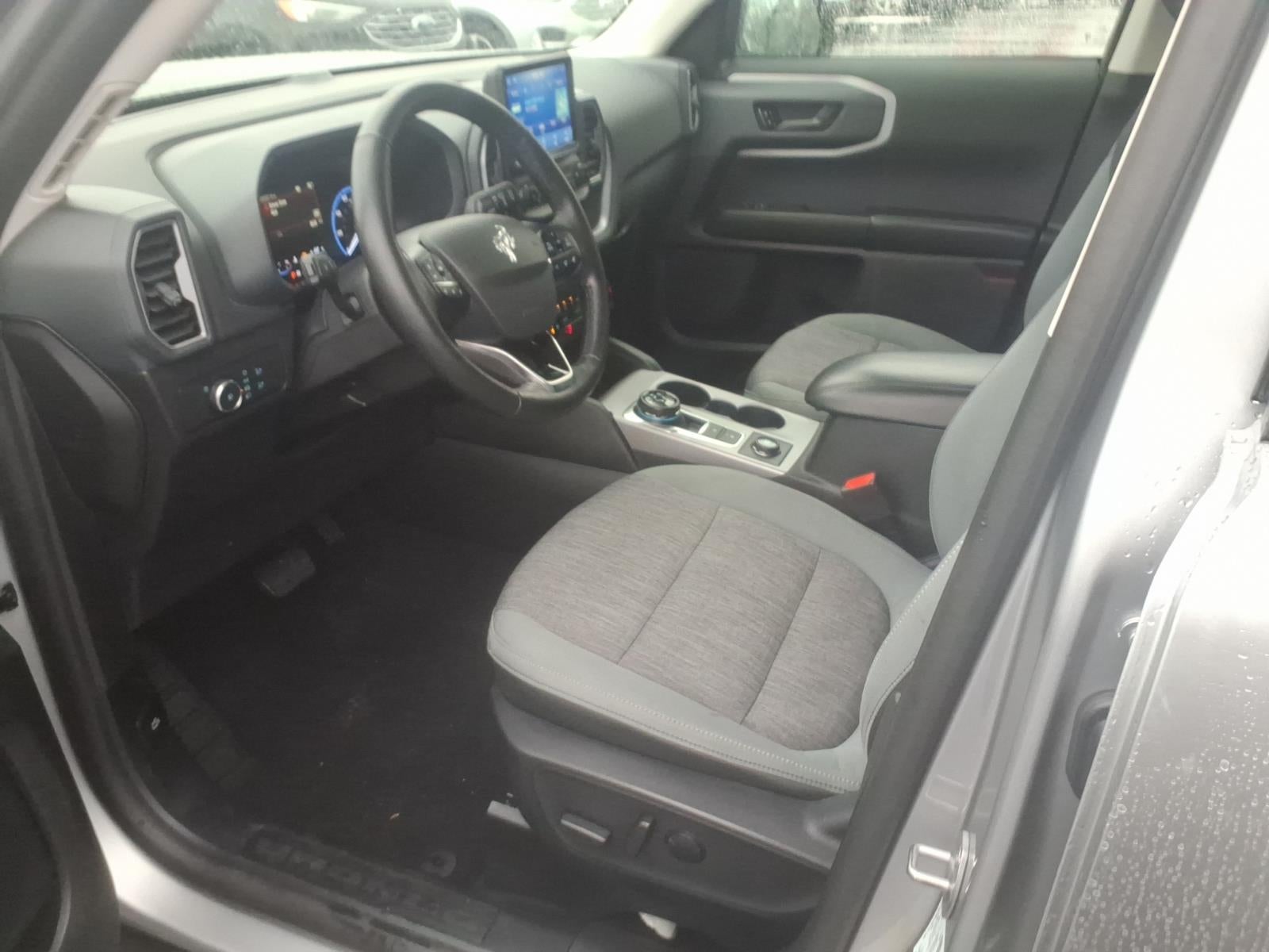 Bronco Sport Big Bend, 4D Sport Utility, 1.5L EcoBoost, 8-Speed Automatic, 4WD, Iconic Silver Metallic, Medium Dark Slate Cloth, 4-Wheel Disc Brakes, ABS brakes, AM/FM radio: SiriusXM, AM/FM Stereo, Auto High-beam Headlights, Brake assist, Class II Trailer Tow Package w/Trailer Sway Control, Compass, Convenience Package, Delay-off headlights, Driver door bin, Driver vanity mirror, Electronic Stability Control, Equipment Group 200A, Evasive Steering Assist, Ford Co-Pilot360 Assist+, Four wheel independent suspension, Front Driver & Passenger Seatback Zipper Pockets, Fully automatic headlights, Heated door mirrors, Heated Front Bucket Seats, Illuminated entry, Intelligent Access (Lock/Unlock), Intelligent Adaptive Cruise Control w/Stop & Go, Leather-Wrapped Steering Wheel, LED Fog Lamps, Outside temperature display, Panic alarm, Power windows, Rear Parking Sensors, Rear window wiper, Remote keyless entry, Roof rack: rails only, Security system, SiriusXM Radio, Speed control, Speed-sensing steering, Speed-Sensitive Wipers, Steering wheel mounted audio controls, SYNC 3 Communications & Entertainment System, SYNC 3/Apple CarPlay/Android Auto, Tachometer, Telescoping steering wheel, Tilt steering wheel, Traction control, Trip computer, Universal Garage Door Opener (UGDO), Variably intermittent wipers, Voice-Activated Touchscreen Navigation System, Wheels: 18 Ebony Black-Painted Aluminum, Wireless Charging Pad.
